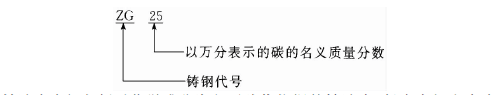(2)以化學成分為主要驗收依據(jù)的鑄造碳鋼,這類鑄鋼在ZG后面接一組數(shù)字,是 以萬分表示的碳的名義質(zhì)量分數(shù)。例如:
